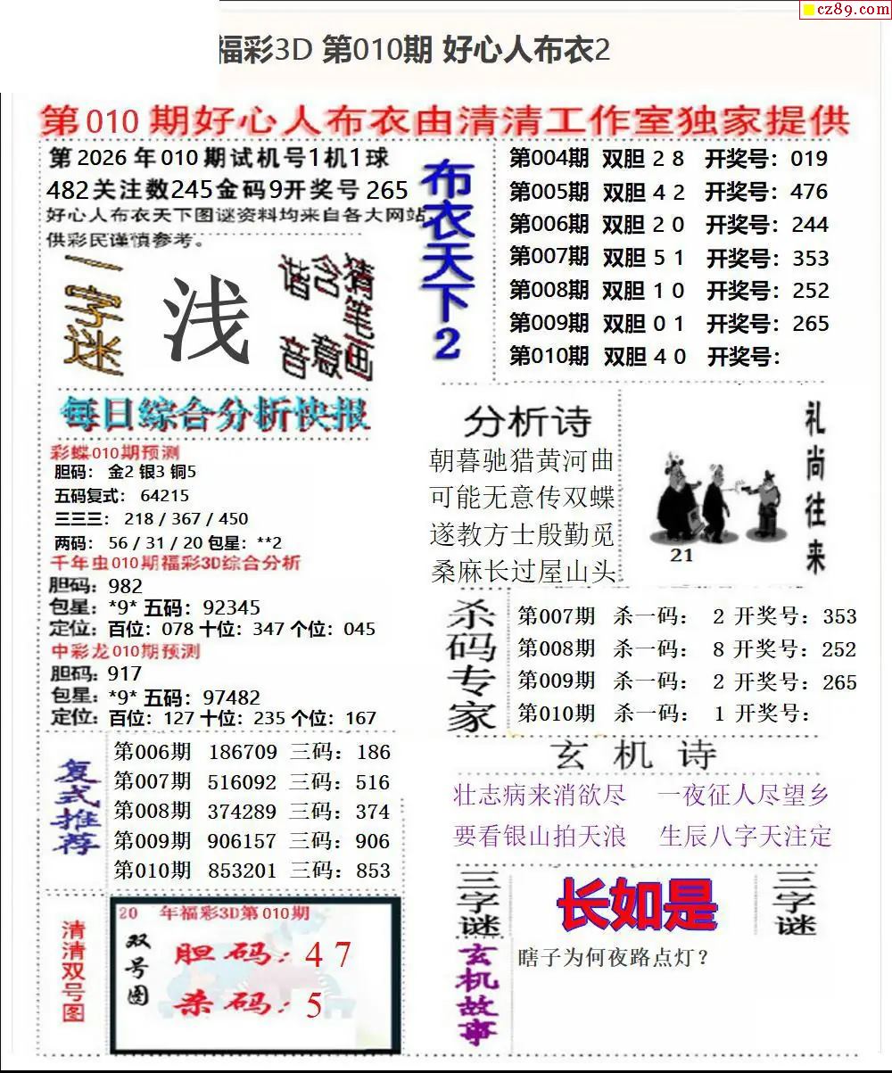好心布衣2026010期3d图谜
