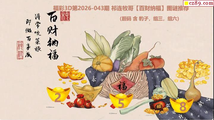 福彩3D2026043期 祁连牧哥百财纳福胆码图谜推荐