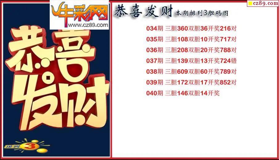 > 2026040期P3恭喜发财胆码图