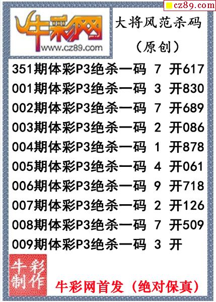 大将风范杀码009期体彩p3图谜(原创)